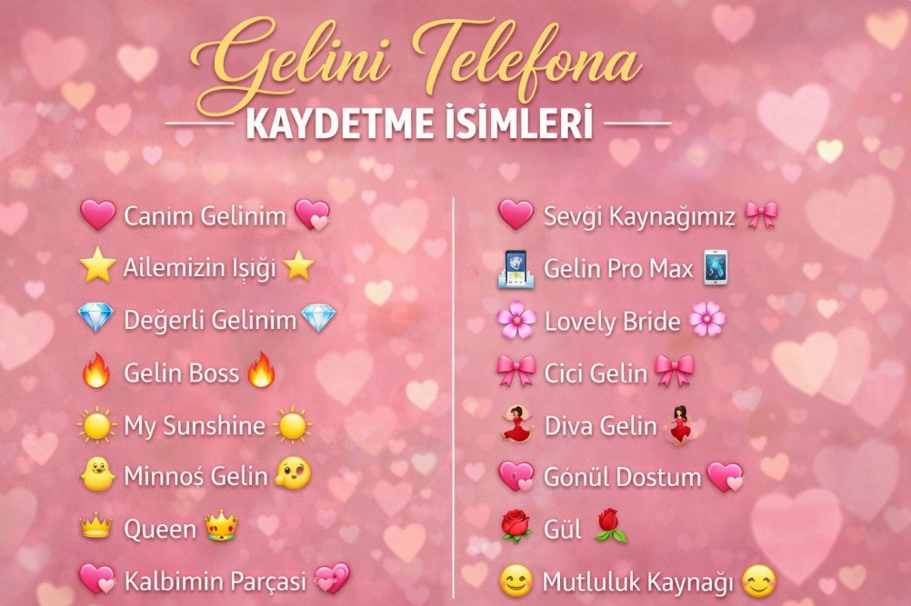 Gelini rehbere kaydetme isimleri küçük bir detay gibi görünse de aslında ilişkinizin tarzını ve samimiyetini yansıtan önemli bir unsurdur. İster anlamlı ister komik ister modern ya da resmi olsun, doğru seçilen isimler gelinle aranızdaki bağı daha özel hale getirir. Bu içerikte yer alan gelini telefona kaydetme isimleri sayesinde, rehberinizde hem dikkat çekici hem de size özel bir hitap oluşturabilirsiniz.