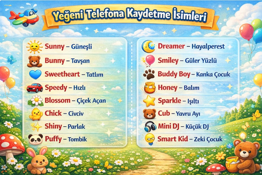Yeğeni İngilizce telefona kaydetme isimleri, modern ve pratik kullanımıyla öne çıkar. Özellikle genç kullanıcılar arasında yaygın olan bu hitaplar kısa, akılda kalıcı ve samimidir. Yeğene İngilizce hitaplar; sevgi, enerji ve yakınlık anlamı taşır. Telefon rehberinde İngilizce tercihler kullanmak, günlük iletişimde farklı ve eğlenceli bir tarz oluşturur. Bu bölümde yer alan yeğeni telefona kaydetme isimleri İngilizce seçenekler, Türkçe karşılıklarıyla birlikte sunulmuştur.